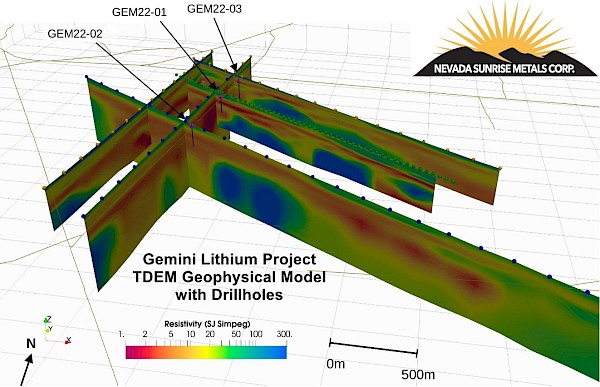 On March 15, 2022, Nevada Sunrise announced the commencement of the inaugural drilling program at Gemini of up to 2,020 feet (615,85 metres) of reverse circulation drilling in up to two holes to test targets for lithium brines and lithium-in-sediments.