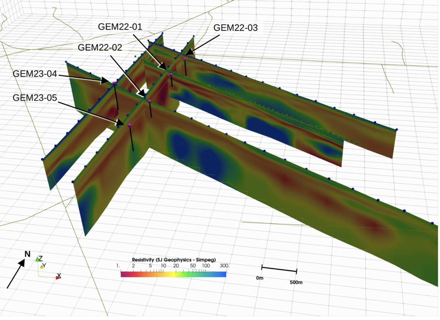 - Phase 2 drill holes GEM22-03, GEM23-04 and GEM23-05 totaled 5,310 ft (1,618.49 metres)