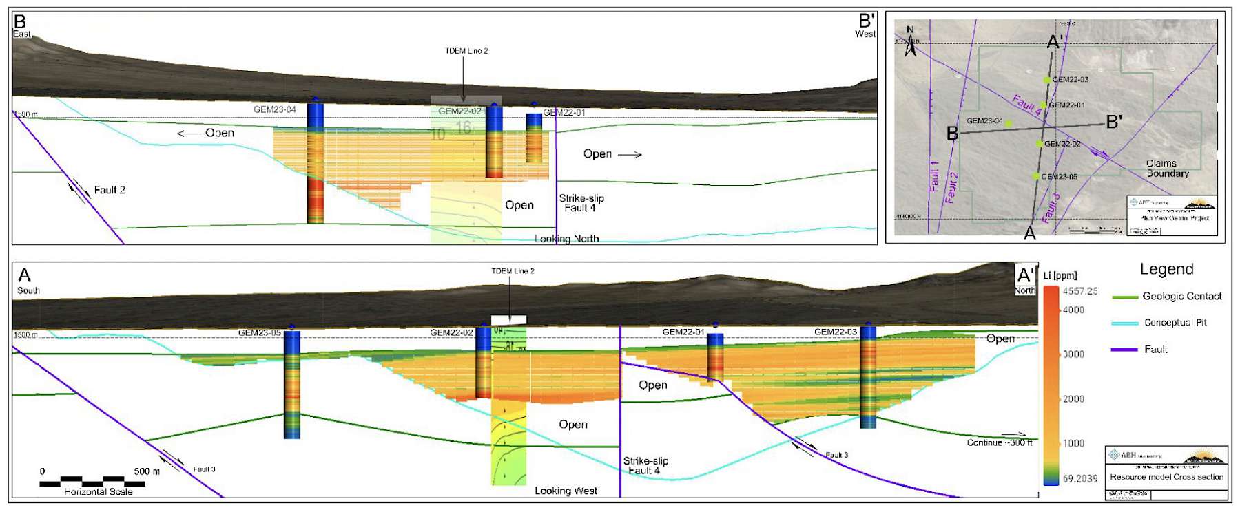 Gemini Lithium Project – Block Model Cross Sections with Conceptualized Open Pit